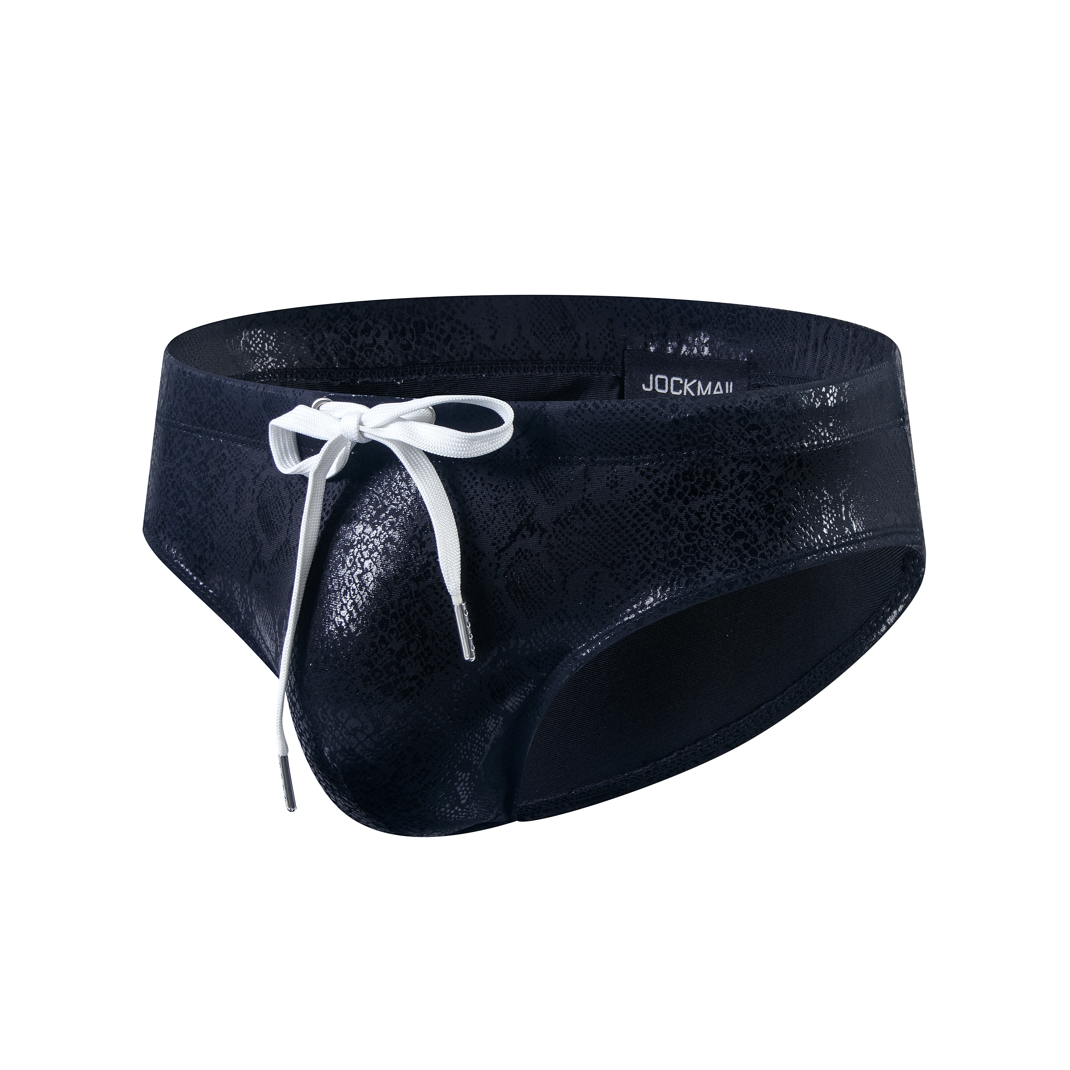 We are proud to introduce our JM709 Snake Swim Brief, which features a stylish snake print and a contoured enhancing pouch for a noticeable bulge, complemented with white drawstrings to provide an impressive look no matter the setting.